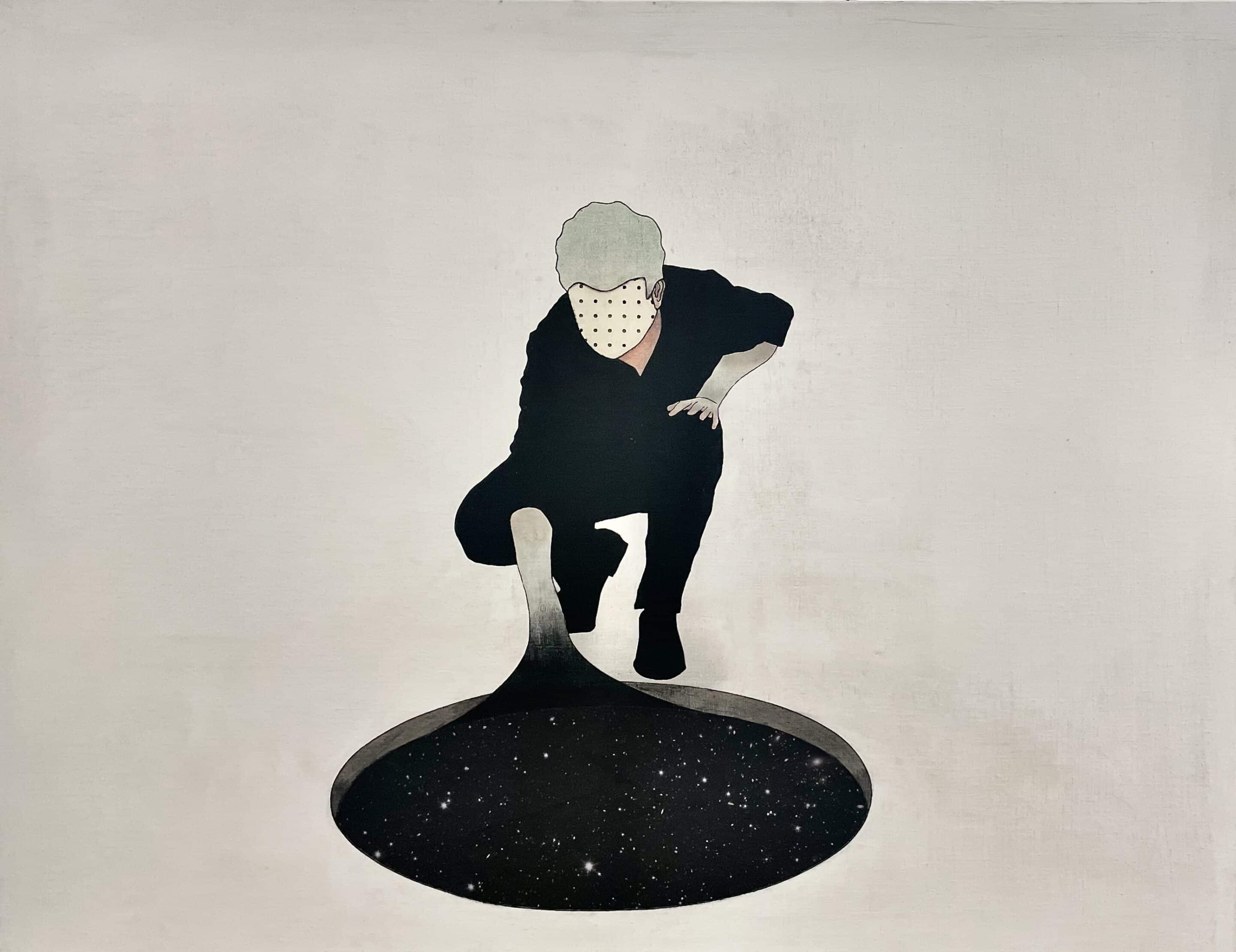 acryl/chinese inkt/pigment/hardboard/spiegel op canvas
